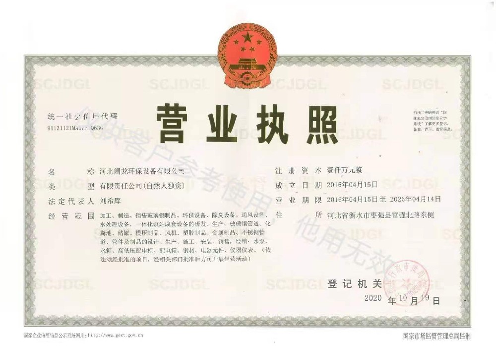 河北闊龍環(huán)保設(shè)備有限公司發(fā)祥于京畿之地、董子故里一一河北省棗強(qiáng)縣,位于環(huán)渤海經(jīng)濟(jì)圈和環(huán)首都經(jīng)濟(jì)圈的”黃金十字交叉處”,緊臨衡大公路、京九鐵路,距大廣高速10公里,地理位置優(yōu)越。設(shè)備先進(jìn),技術(shù)力量雄厚,能夠獨(dú)立進(jìn)行玻璃鋼環(huán)保系列產(chǎn)品的研發(fā)設(shè)計(jì)、生產(chǎn)和安裝維修服務(wù),已發(fā)展成為華北研發(fā)實(shí)力強(qiáng)、技術(shù)力量雄厚的玻璃鋼環(huán)保企業(yè)。公司產(chǎn)品主要有       玻璃鋼水處理系列:玻璃鋼一體化泵站,玻璃鋼生活污水提升泵站,一體化污水處理設(shè)備,       玻璃鋼除臭系列:玻璃鋼生物除臭設(shè)備,玻璃鋼污水池蓋板;       玻璃鋼容器系列:立式罐、臥式罐、運(yùn)輸罐、壓力罐、發(fā)酵罐、活性炭過(guò)濾罐、攪拌罐、加藥罐、玻璃鋼化糞池、現(xiàn)場(chǎng)纏繞大型罐等;       塔器系列:脫硫脫硝塔、氨氮塔、大型脫硫塔內(nèi)外件、除塵塔、活性炭吸附塔、酸霧吸收塔、臭氧接觸培、氨氮吹脫塔、生物除臭培、高能離子塔、氯化氫吸收塔等;       玻璃鋼管道系列:夾砂管道、頂管、高壓管、電纜···【詳細(xì)介紹】